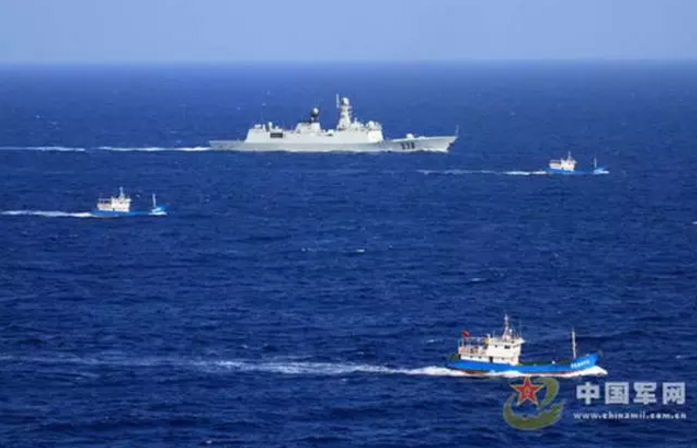 中国海军护航编队护送途经亚丁湾海域的渔船船队