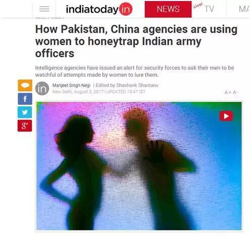 8月3日,该杂志在自己的独家报道中援引印度“一位高层消息人士”“披露”称,中国和巴基斯坦为了获取印度军事情报,竟然对印度军官使用了美人计!