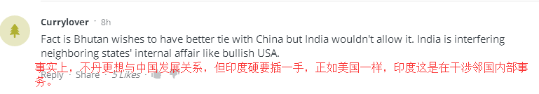 这两位网友看法很一致,认为不丹不属于印度,但西藏确实是中国的,印度正在插手邻国内务。
