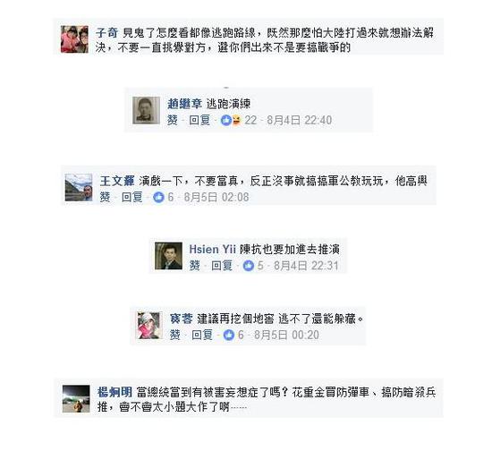 脸书上,岛内网友也是骂声连连,称蔡英文是“史无前例的初上任就先演练如何逃命的台湾地区领导人。”