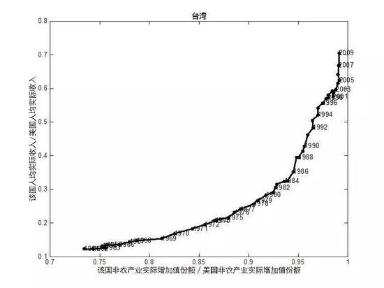 再往下一个是台湾地区,它的发展也是相当顺利的,但是这里面没有包括民国时期的状况,那段时期也会像拉美那样转来转去的,找不到方向。