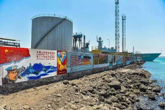 这是不久前靠泊吉布提的蒋林芝留在“海军墙”上的一句话