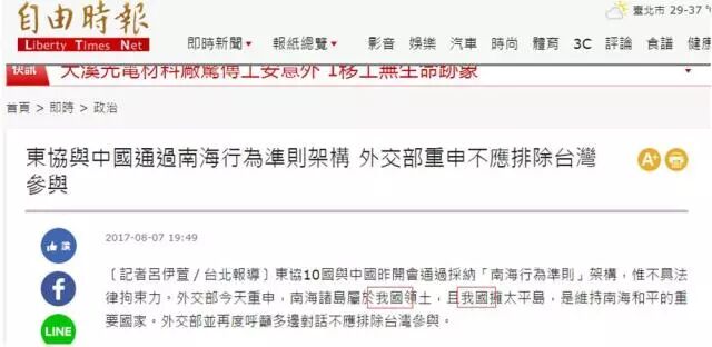 对于“南海行为准则”,岛内政客也众说纷纭,国民党“立委”吕玉玲认为,台当局一方面大力推“新南向政策”,一方面在南海议题上却没被邀请讨论,她呼吁蔡英文“真的要赶紧做好外交准备工作”。就连民进党“立委”郭正亮也在7日坦承,“南海行为准则”可以强化区域和平稳定,这些对台湾来讲也不是坏事,“只是台湾没办法参加而已”。