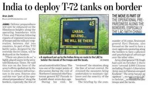 印度凡事总爱以中国为假想敌,当年试验核武器时,印度就以应对“中国威胁”为理由,来给自己开脱,试射导弹时,还经常在电视上以中国地图为例,演示导弹的落点,以此说明导弹射程有多远,虽然三哥的导弹经常做“布朗运动”,瞄准A、射向B、最后打中C,但这并不妨碍他们看着地图莫名兴奋,甚至印媒曾展示过一张印度陆军的标语牌,上面写着“我们迟早要进军拉萨和北京”……