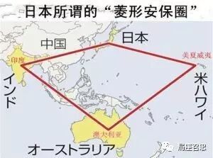 安倍早前在访问印度时就提出过“自由与繁荣之弧”的概念,意图联合与日本拥有“相同价值观”的国家,建立一条从东南亚经南亚至东欧的“弧线”,而这个弧线,恰好就包围了中国。印度对此乐见其成,还积极加强印日防务关系,响应日本号召,想要联合美国、澳大利亚等国,组成对华“菱形包围圈”。