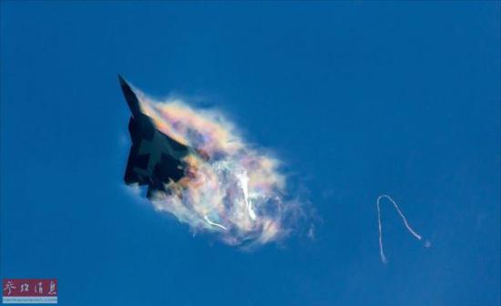 资料图:飞出“七彩祥云”效果的T-50隐身战机。