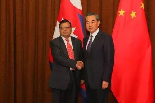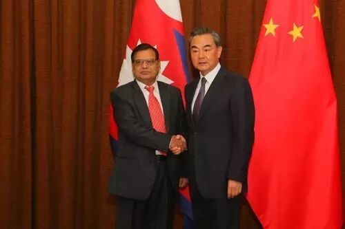 ▲尼泊尔副总理兼外长克里希纳·马哈拉8日说,尼泊尔不会在中印之间选边站。图为中国外长王毅与马哈拉在会谈前握手。