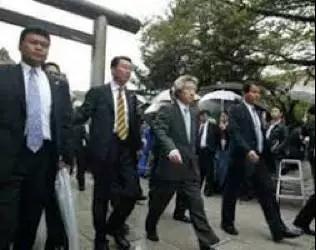 2005年10月,小泉在保镖簇拥下参拜靖国神社。