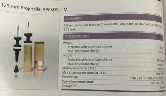 中国出口给巴基斯坦的125毫米穿甲弹穿深标称为相当于460毫米均质钢装甲,按俄罗斯测试标准,起码可以标注到500毫米以上。