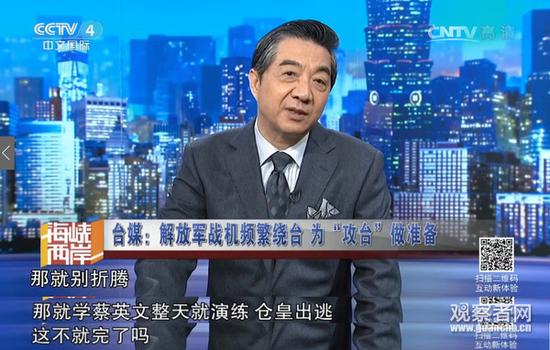 在8月14日晚播出的《海峡两岸》节目中,局座张召忠回应说:“怕飞机太破烂被折腾散架了,那就别折腾呗,学蔡英文整天演练仓皇出逃,不就完了吗?”