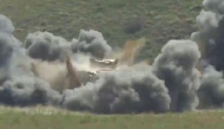VT4坦克上的GL-5型主动防护系统成功拦截来袭的120毫米反坦克火箭