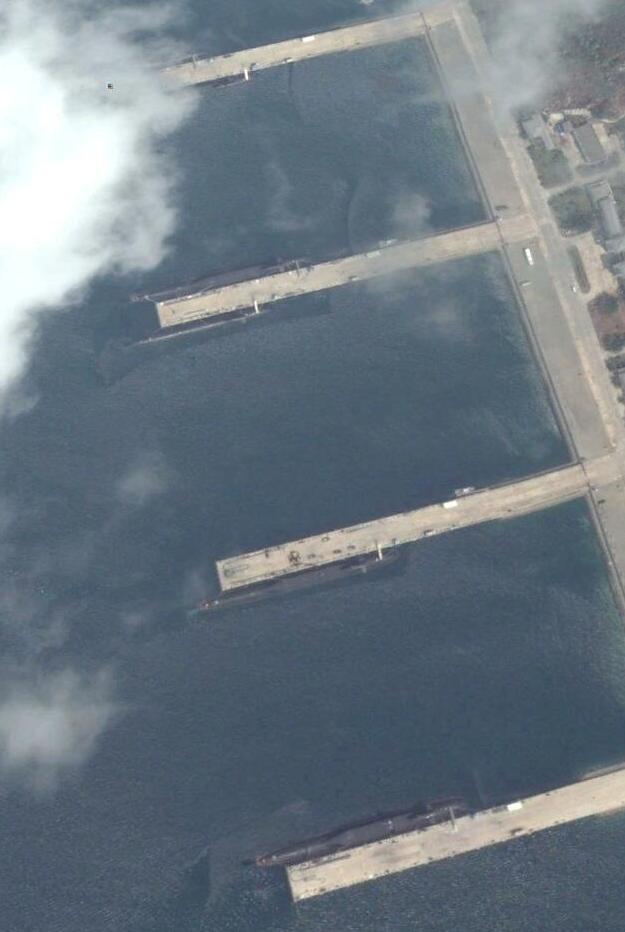 谷歌地图最近更新的3月8日拍摄的照片,显示4艘094型核潜艇停泊在三亚某基地