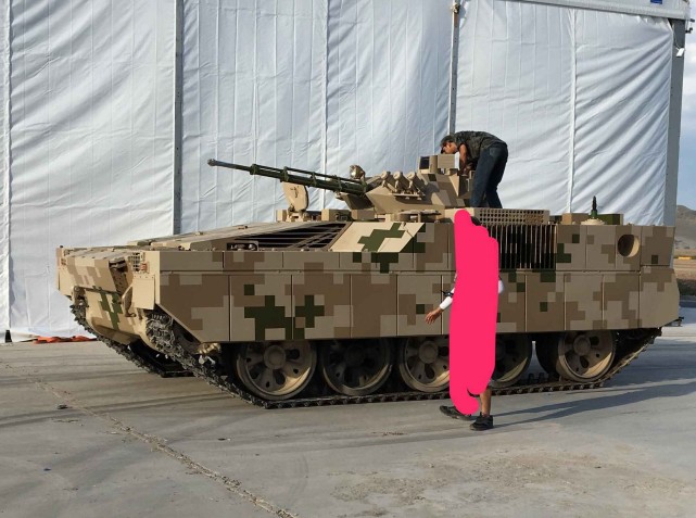 由于现场规定,没有拍摄到59改装重步兵战车的图片,只能借用网上的了,图中可以看出59改步兵战车采用“倒坐观音”布局,前部增加了多层的装甲,炮塔则是类似86A步兵战车水平