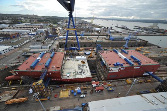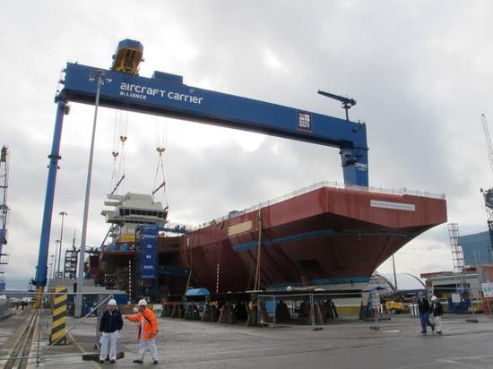 英国购入的这款起重机耗资1220万英镑,罗斯赛造船厂为了建造航母,在基础设施改造方面投资了8000万英镑。