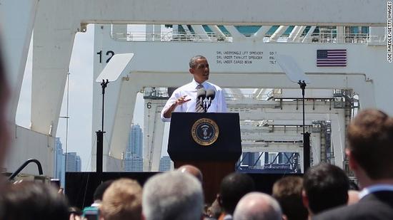 美国也曾购买过中国上海振华集团的起重机,图中为2013年奥巴马在迈阿密的造船厂为工人做演讲,主题就是“振兴美国制造业”,而背后就是来自上海振华中国的巨型起重机,为了消弭这种尴尬,美国人用数字和国旗掩盖了振华标志。然而,没有想到的是,美国国旗竟然被风给吹起来了,还是露出了中国振华的标志。(作者署名:空军世界)