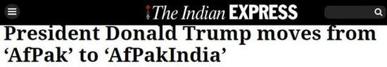 《印度快报》发表评论文章称,美国的阿富汗政策正在从“AfPak”(阿富汗-巴基斯坦的英文缩写),转变为“AfPakIndia”(阿富汗-巴基斯坦-印度的缩写)。
