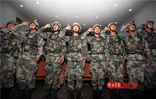 ▲“跨越-2017·朱日和”演习誓师大会上指战员宣誓。(解放军报)