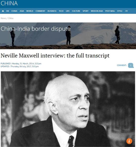 2014年3月,内维尔·马克斯韦尔将《亨德森·布鲁克斯-巴贾特报告》上传互联网后接受了香港英文媒体《南华早报》的采访(图为印度前总理尼赫鲁)