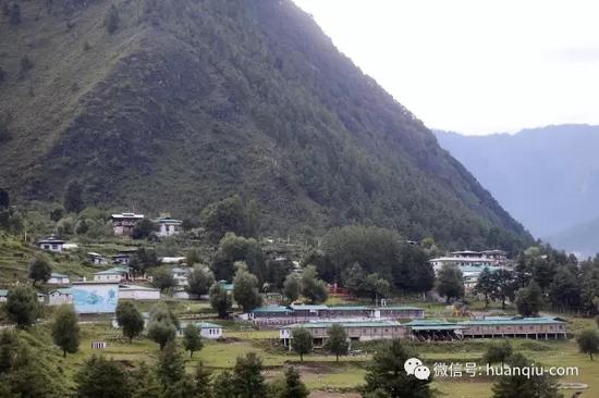 《环球时报》记者入住的旅舍在一个平缓的山坡上,可以一览哈阿河谷全貌。河谷大致分成两个区域,上游是居民所在的哈阿镇,向下游走数百米,就是军事区。
