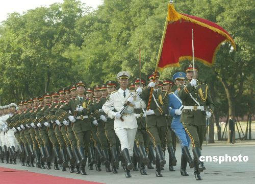 迈着整齐的步伐,走出天安门城楼,走过金水桥……