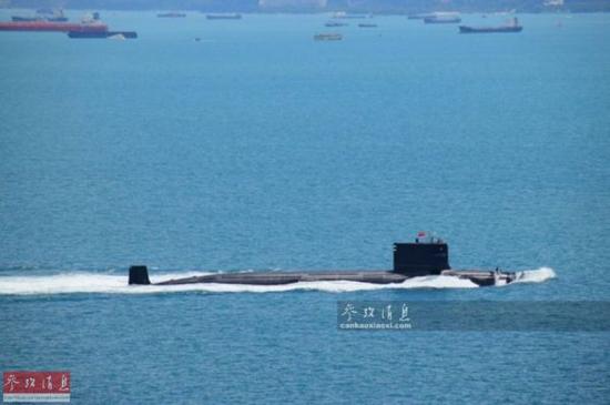 资料图:中国核潜艇挂国旗高调通过马六甲海峡。