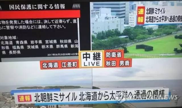 日本政府29日表示,朝鲜当天发射一枚导弹,该导弹从日本上空飞过。据韩联社报道,日本首相安倍晋三当天表示,疑似朝鲜发射的弹道导弹通过了日本上空。安倍晋三当天接到朝鲜射导情报后立刻前往首相官邸上班并做出如上表态。安倍表示,将立即进行情报收集分析,为确保国民的生命安全竭尽全力。