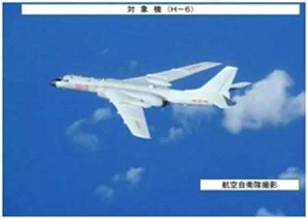 日本防卫省统合幕僚监部发布的消息称中国空军6架轰-6也进行了飞行训练