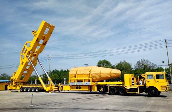 运输发射系统空载垂直起竖试验,采用双四级长行程液压缸同步起竖方案