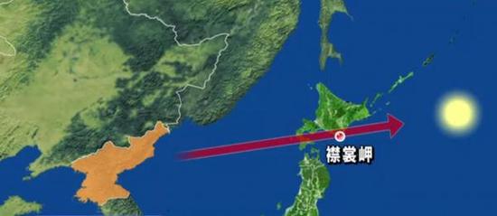 NHK发表的朝鲜导弹飞行方向和坠落地点示意图