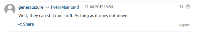 “不不,我们的航母并不是一无是处,至少它可以去撞别的船,只要它能开动的话…”