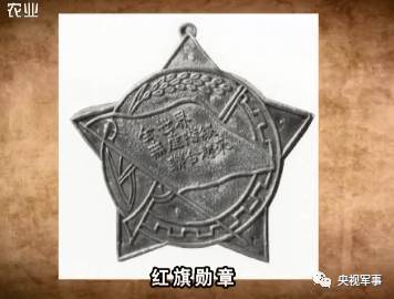这个红旗勋章的设计者据说是一个很特别的人,是我们的“龙潭三杰”中的钱壮飞。红旗勋章的外面是五角星,中间的圆形中有工、农、兵的图案,一个齿轮代表工人,一个麦穗、嘉禾代表农民,正中间是一支枪横穿过去。