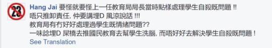 也有人把蔡女士遭到恶毒攻击的原因,归咎于香港教育局之前没有处理好学生自杀的事情,只想着给学生洗脑:即因为政府没人性,我们就可以没人性。