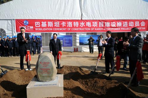 资料图片:巴基斯坦卡洛特水电站奠基仪式(2016年1月10日摄)。
