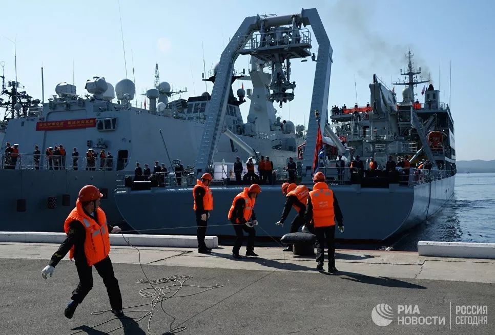 ▲中国海军舰艇抵达符拉迪沃斯托克。(俄新社)