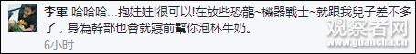 这位爱抱娃娃睡觉的士兵的抱怨,立刻引来了网民们的热议。有人力挺,表示抱着娃娃睡觉没什么,长官管太多了:
