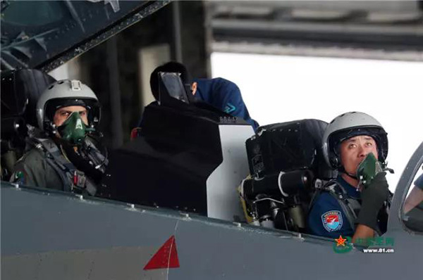 11时,哈希布少将登上战机,在前舱飞行员辛鑫的协助指导下,完成座舱准备,待命起飞。