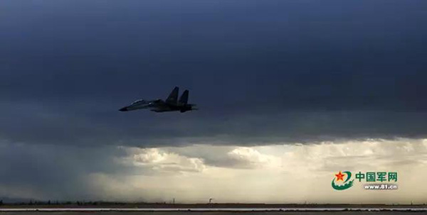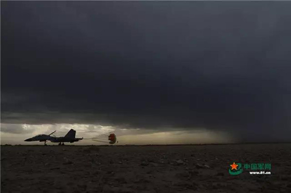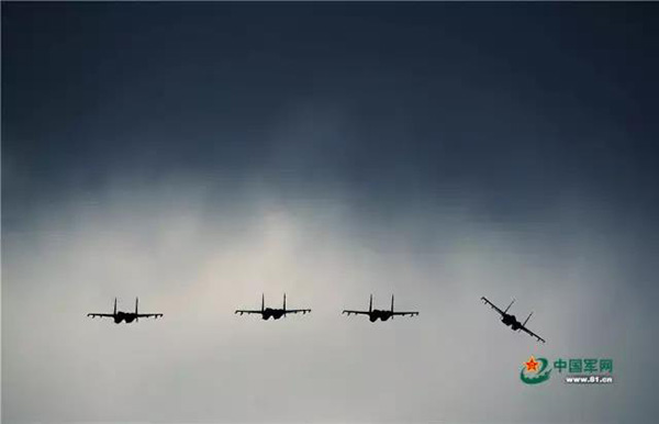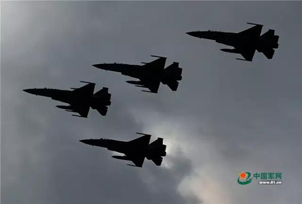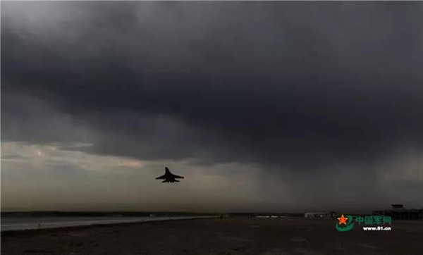 紧随其后的歼-11B战机四机编队低空通过本场,迅速解散返航。