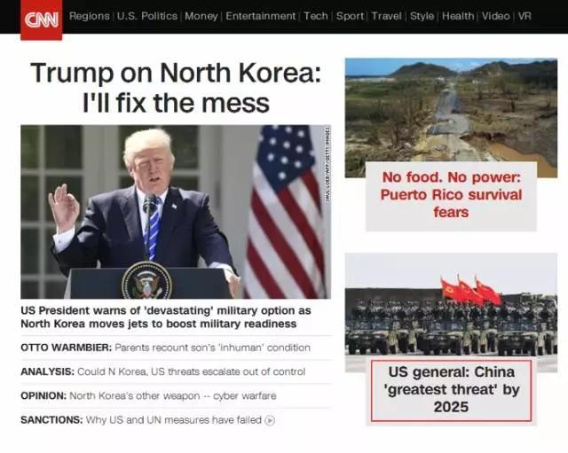 看到了吧,中国又上CNN首页了,因为“美国最高将军说,中国2025年前将成为最大威胁”。