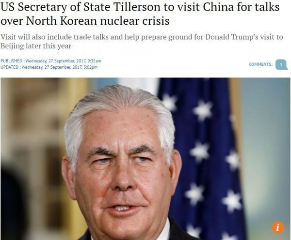 美联社注意到,蒂勒森即将访华的当口,正值美国和朝鲜的紧张关系升级。