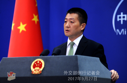原标题:2017年9月27日外交部发言人陆慷主持例行记者会