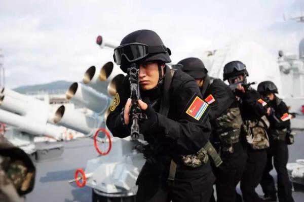 特战队员组织“泰华海”轮船员进行反海盗演练。