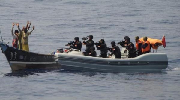 军事:中国海军驱离疑似海盗小艇 保护外国商船安全驶离(2)