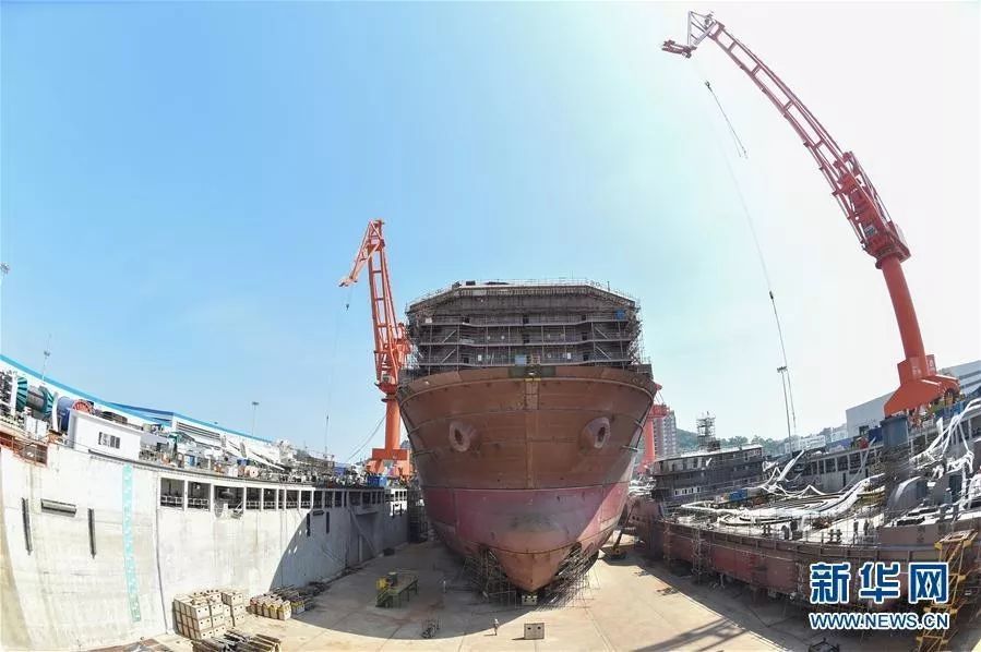 ▲中国造世界首艘深海采矿船已经完成船体部分安装,目前正在安装船载设备。(新华社)
