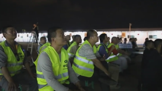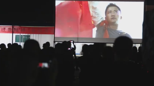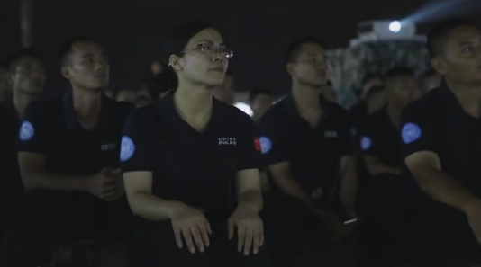 从视频显示,大家在维和部队营区搭起了露天小影院,一同观看《战狼2》!