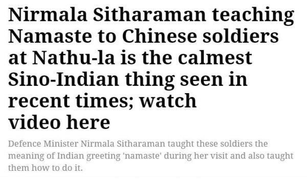 一开始中国军官介绍自己的同事,解释他们的职责,西塔拉曼则用“合十礼”问候。其后几次交流,中国士兵明白了“合十礼”的意思,并用类似的中国说法“你好”问候西塔拉曼。视频在双方的欢笑中结束。