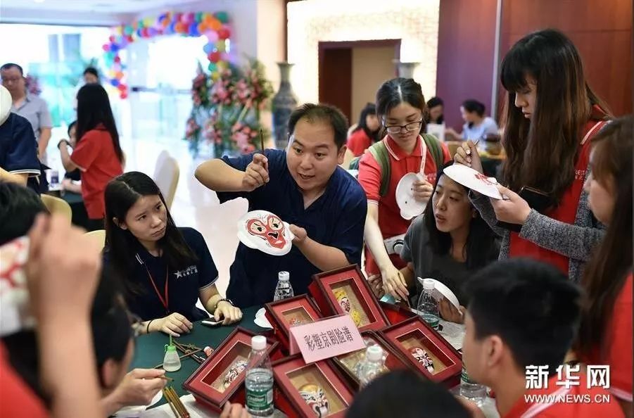 ▲资料图片:2016年6月18日,2016未来之星·香港传媒专业大学生国情课程班中国传统文化之旅活动在北京举行。彩塑京剧脸谱传承人林泓魁(中)向香港大学生讲解绘画要领。