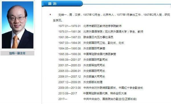 “前驻联合国大使刘结一出任国台办第一副主任”!
