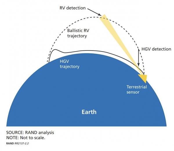 由于地球曲率影响,高超声速滑翔器只有在接近目标到很近的距离才会被地面雷达发现