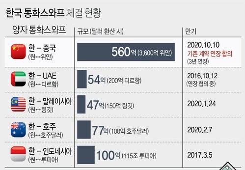 除了中国,韩国只跟阿联酋、马来西亚、澳大利亚和印尼存在货币互换协议