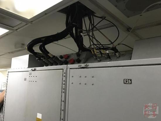 除了雷达,飞机上的“蘑菇”还有敌我识别等其它设备,图为其它设备的线路连接到飞机内部的处理机柜上。